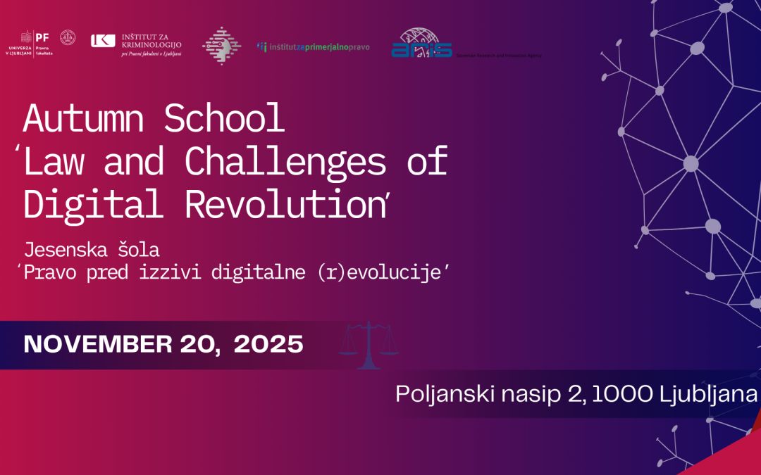 You are invited to the Autumn School “Law and the Challenges of Digital (R)evolution”, organized by the Institute of Criminology at the Faculty of Law in Ljubljana, in cooperation with the Faculty of Law University of Ljubljana, the Institute of Comparative Law at the Faculty of Law and the Centre for IT, Law and Ethics (CITPE).