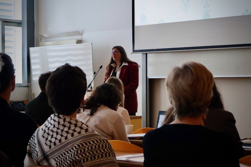 Dan se je zaključil z vabljenim predavanjem Mahe Abdallah, ki je osvetlila vlogo mednarodnih institucij pri (ne)odzivanju na zločine proti človeštvu.
